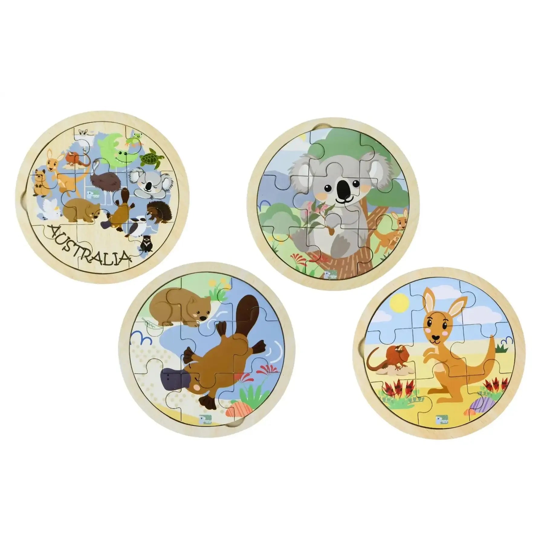 9 Piece Wooden Jigsaw - Austrlain animals - 4 Different designs
