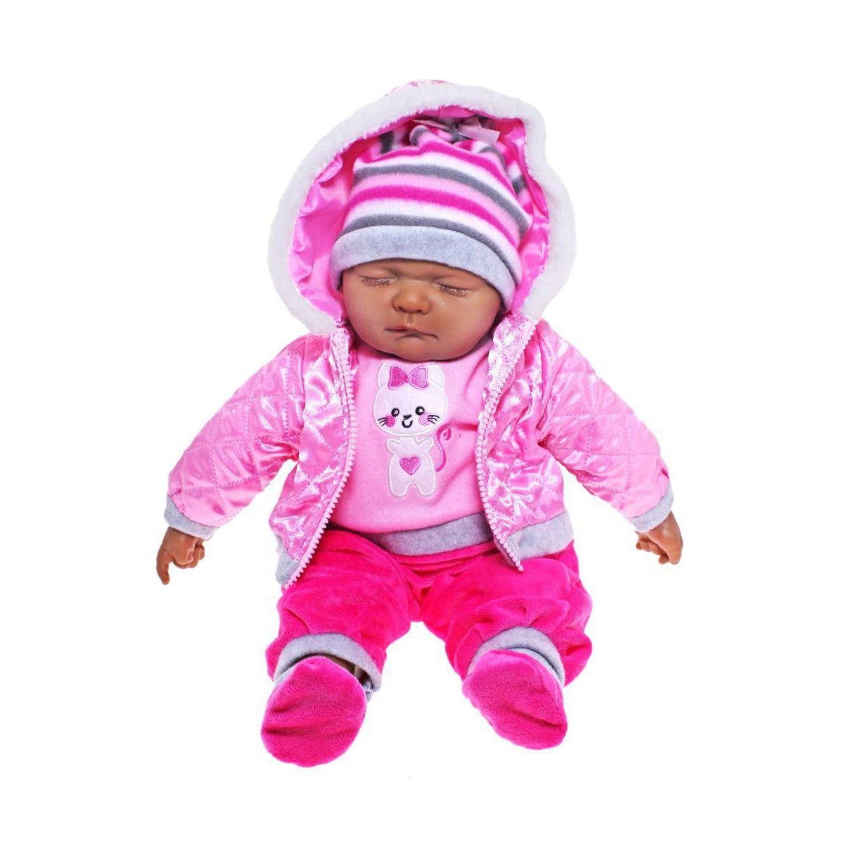 Nearly newborn size at a large 51cm long. Face, hands and feet are made from Vinyl materials and I have a very soft plush body