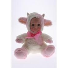 Plush animal with rubber baby face. Many Designs available. This is a cow design named Moo