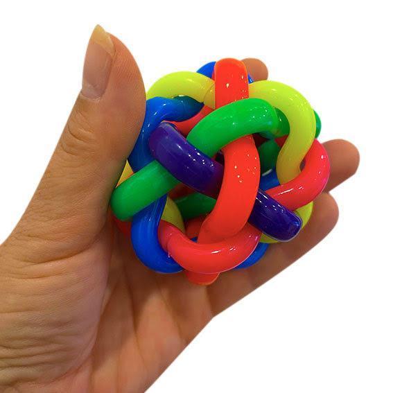 This WOVEN RAINBOW FIDGET BALL will keep your hands busy to let off some stress, anxiety, or boredom. Just give it a squeeze then watch it bounce right back into shape, so satisfying. This multi faceted sensory ball also bounces for added fun.