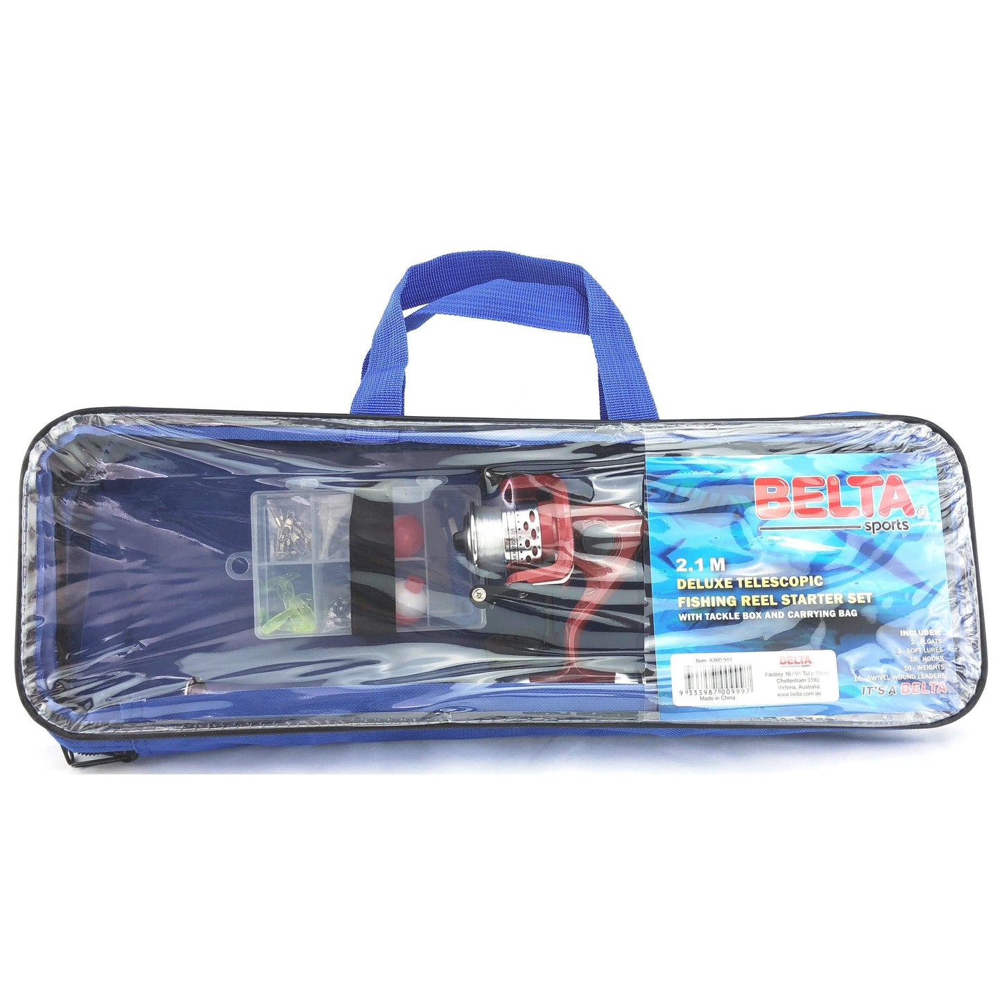 2.1 Metre Telescopic Rod with reel, line, tackle box with various fishing accessories. All in handy carry case.