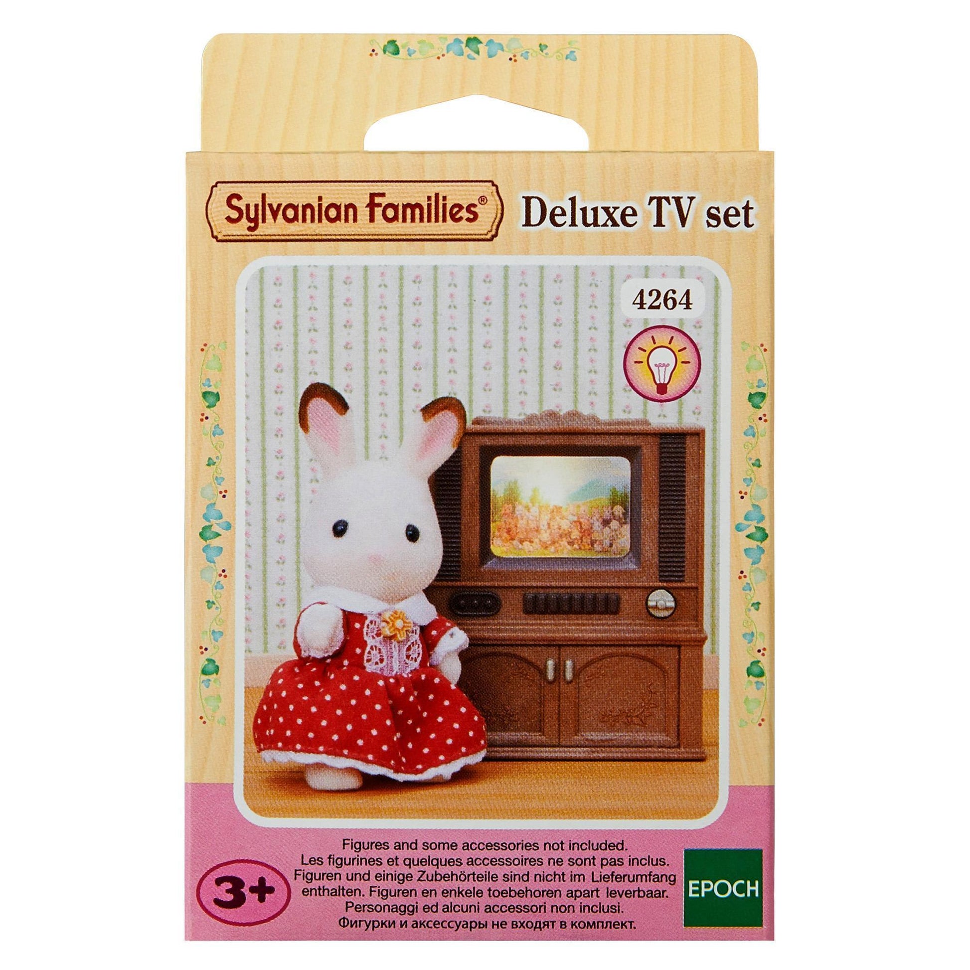 Give your Sylvanian Family a treat with the Deluxe TV Set. This television will be a hit as it includes a light-up screen and four different TV images.