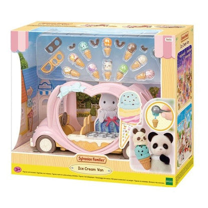Here comes the Ice Cream Van – possibly the most popular vehicle in all of Sylvania! Whether is parked in the Village Square or at the Baby Amusement Park the Sylvanians can’t help but smile when they see it. This pretty pastel pink food van has a delightful rabbit theme and is packed full of wonderful frozen treats to enjoy. Serve the different flavours in the cones and add the chocolate toppings, which come in adorable animal shapes so you can create personalised rabbit, cat or panda ice creams. The cones can even be held by your figures.